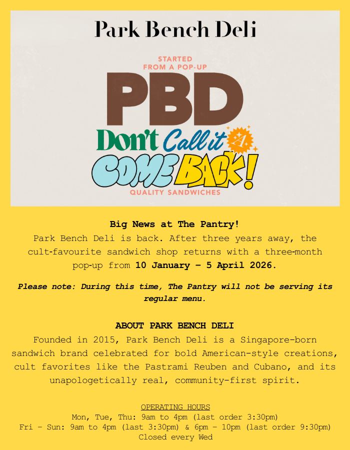 The Pantry’s specially curated menu offers a sumptuous selection of family favourites and comfort food that encourages diners to savour the simple joys of dining with friends and family.